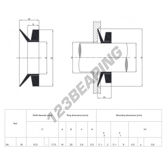 Das V-ringe mit der Referenz VA16-NBR hat einen Innendurchmesser von mm und eine Dicke von mm. Er ist aus dem Material NBR gefertigt.