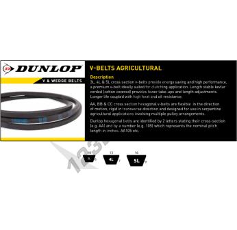 Der Riemen 4L350K-DUNLOP der Familie von Keilriemen Glatt, Marke DUNLOP, und Profil 4L. Es hat einen 12.70mm x 9mm mit einer internen Länge 839 mm, einer externen Länge 889 mm, und einer primitiven Länge mm.