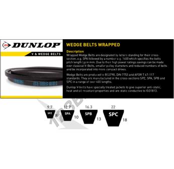 Der Riemen SPC7100-DUNLOP der Familie von Keilriemen Glatt, Marke DUNLOP, und Profil SPC. Es hat einen 22mm x 18mm mit einer internen Länge 7017 mm, einer externen Länge 7130 mm, und einer primitiven Länge mm.