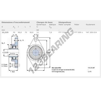 Das Stehlagereinheiten / Flanschlagereinheiten 2- Loch bekannt als FYT7-8-RM-SKF SKF, hat einen Wellendurchmesser von 22.23 mm und einen Befestigungsabstand von 98.8 mm. Diese Referenz wird aus Gusseisen hergestellt und der Klemmtyp ist .