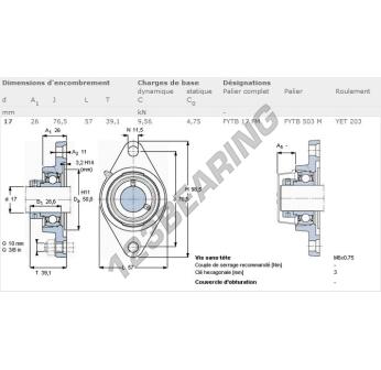 Das Stehlagereinheiten / Flanschlagereinheiten 2- Loch bekannt als FYTB17-FM-SKF SKF, hat einen Wellendurchmesser von 17 mm und einen Befestigungsabstand von 76.5 mm. Diese Referenz wird aus Gusseisen hergestellt und der Klemmtyp ist .