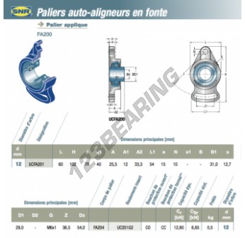 Das Stehlagereinheiten / Flanschlagereinheiten 2- Loch bekannt als UCFA201-SNR SNR, hat einen Wellendurchmesser von 12 mm und einen Befestigungsabstand von 78 mm. Diese Referenz wird aus Gusseisen hergestellt und der Klemmtyp ist .
