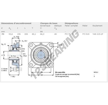 Das Stehlagereinheiten / Flanschlagereinheiten 4- Loch bekannt als FYJ75-TF-SKF SKF, hat einen Wellendurchmesser von 75 mm und einen Befestigungsabstand von 159 mm. Diese Referenz wird aus Gusseisen hergestellt und der Klemmtyp ist .