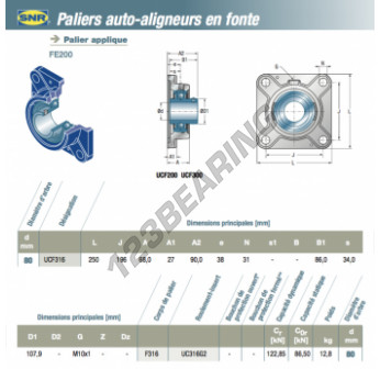 Das Stehlagereinheiten / Flanschlagereinheiten 4- Loch bekannt als UCF316-SNR SNR, hat einen Wellendurchmesser von 80 mm und einen Befestigungsabstand von 196 mm. Diese Referenz wird aus Gusseisen hergestellt und der Klemmtyp ist .