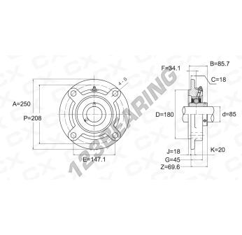 Das Stehlagereinheiten / Flanschlagereinheiten 4- Loch bekannt als UCFC217 Generisches, hat einen Wellendurchmesser von 85 mm und einen Befestigungsabstand von 147.1 mm. Diese Referenz wird aus Gusseisen hergestellt und der Klemmtyp ist .