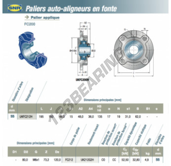 Das Stehlagereinheiten / Flanschlagereinheiten 4- Loch bekannt als UKFC212H-SNR SNR, hat einen Wellendurchmesser von 55 mm und einen Befestigungsabstand von 160 mm. Diese Referenz wird aus Gusseisen hergestellt und der Klemmtyp ist .