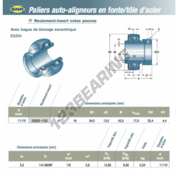 Das Zubehör Für Achslagern bekannt als EX203-11-G2-SNR SNR hat einen Innendurchmesser von 17.4625 mm, einen Außendurchmesser von 47 mm und eine Dicke von 16 mm. Er wird aus hergestellt.