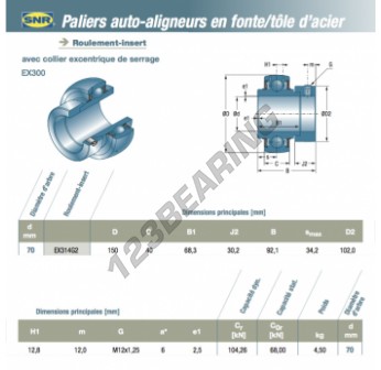 Das Zubehör Für Achslagern bekannt als EX314-G2-SNR SNR hat einen Innendurchmesser von 70 mm, einen Außendurchmesser von 150 mm und eine Dicke von 40 mm. Er wird aus hergestellt.