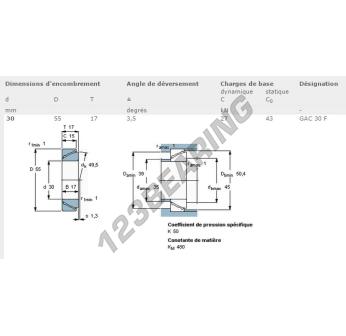 Das Gelenklager Gac bekannt als GAC30F-SKF hat einen Innendurchmesser von 30 mm und einen Außendurchmesser von 55 mm.