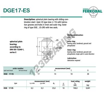 Das Gelenklager Ge bekannt als DGE17-ES-DURBAL DURBAL hat einen Innendurchmesser von 17 mm, einen Außendurchmesser von 30 mm und einer Dicke von 10 mm.