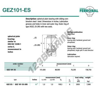 Das Gelenklager Geew bekannt als GEZ101-ES-DURBAL DURBAL hat einen Innendurchmesser von 101.6 mm, einen Außendurchmesser von 158.75 mm und einer Dicke von 76.2 mm.