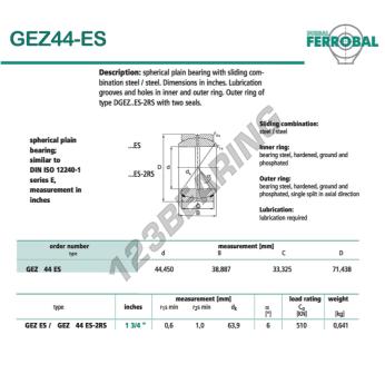 Das Gelenklager Geew bekannt als GEZ44-ES-DURBAL DURBAL hat einen Innendurchmesser von 44.45 mm, einen Außendurchmesser von 71.438 mm und einer Dicke von 33.325 mm.