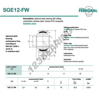 Das Gelenklager Geew bekannt als SGE12-FW-DURBAL DURBAL hat einen Innendurchmesser von 12 mm, einen Außendurchmesser von 26 mm und einer Dicke von 9 mm.