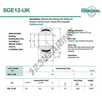 Das Gelenklager Geew bekannt als SGE12-UK-DURBAL DURBAL hat einen Innendurchmesser von 12 mm, einen Außendurchmesser von 22 mm und einer Dicke von 7 mm.