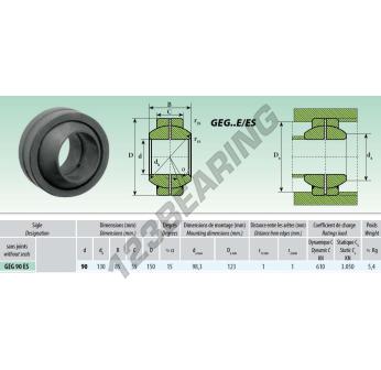 Das Gelenklager Geg bekannt als GEG090-ES Generisches hat einen Innendurchmesser von 90 mm, einen Außendurchmesser von 150 mm und einer Dicke von 85 mm.