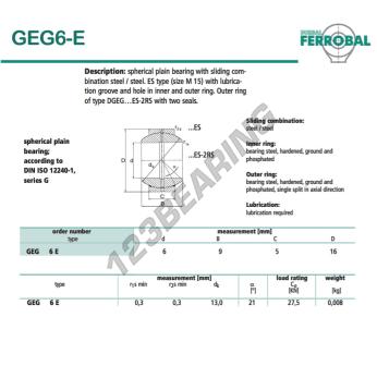 Das Gelenklager Geg bekannt als GEG6-E-DURBAL DURBAL hat einen Innendurchmesser von 6 mm, einen Außendurchmesser von 16 mm und einer Dicke von 5 mm.