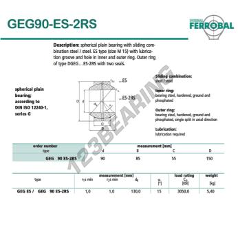 Das Gelenklager Geg bekannt als GEG90-ES-2RS-DURBAL DURBAL hat einen Innendurchmesser von 90 mm, einen Außendurchmesser von 150 mm und einer Dicke von 55 mm.