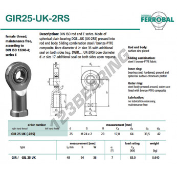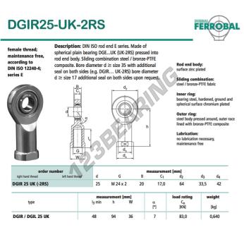 Das Gelenkköpfe Si bekannt als DGIR25-UK-2RS-DURBAL DURBAL hat einen Innendurchmesser von 25 mm, einen Außendurchmesser von 64 mm und einer Dicke von 20 mm.