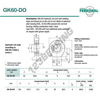 Die Gelenkköpfe Tpn bekannt als GK60-DO-DURBAL DURBAL hat einen Innendurchmesser von 60 mm, einen Außendurchmesser von 135 mm und eine Dicke von 44 mm.