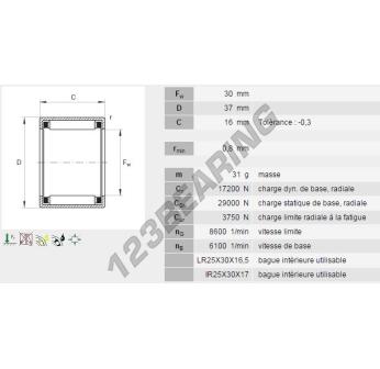 Das Nadelhülsenlager, bekannt als HK3016-B-INA INA, hat einen Innendurchmesser von 30 mm, einen Außendurchmesser von 37 mm und eine Dicke von 16 mm.