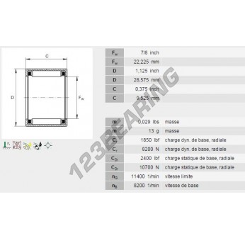 Das Nadelhülsenlager, bekannt als SCE146-INA INA, hat einen Innendurchmesser von 22.23 mm, einen Außendurchmesser von 28.58 mm und eine Dicke von 9.52 mm.