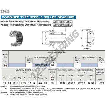 Das Nadelkränze , bekannt als NKX50Z-IKO IKO, hat einen Innendurchmesser von 50 mm, einen Außendurchmesser von 62 mm und eine Dicke von 35 mm.