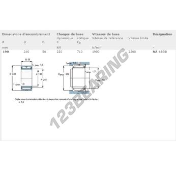 Das Axial-nadellager , bekannt als NA4838-SKF SKF, hat einen Innendurchmesser von 190 mm, einen Außendurchmesser von 240 mm und eine Dicke von 50 mm.