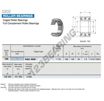 Das Axial-nadellager , bekannt als NAU4920-IKO IKO, hat einen Innendurchmesser von 100 mm, einen Außendurchmesser von 140 mm und eine Dicke von 40 mm.