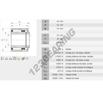 Das Axial-nadellager , bekannt als NKIB5905-INA INA, hat einen Innendurchmesser von 25 mm, einen Außendurchmesser von 42 mm und eine Dicke von 25 mm.