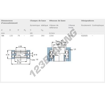 Das Axialrillenkugellager, bekannt als 52315-SKF SKF, hat einen Innendurchmesser von 60 mm, einen Außendurchmesser von 135 mm und eine Dicke von 79 mm.