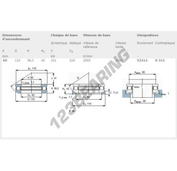 Das Axialrillenkugellager, bekannt als 53312-SKF SKF, hat einen Innendurchmesser von 60 mm, einen Außendurchmesser von 110 mm und eine Dicke von 38.3 mm.