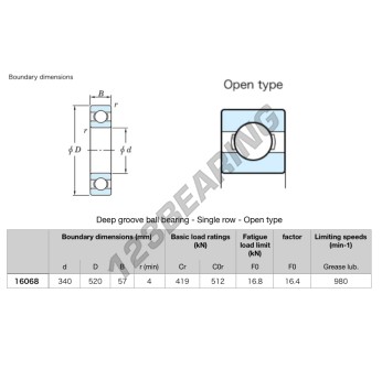 Das Rillenkugellager, bekannt als 16068-JTEKT JTEKT, hat einen Innendurchmesser von 340 mm, einen Außendurchmesser von 520 mm und eine Dicke von 57 mm.