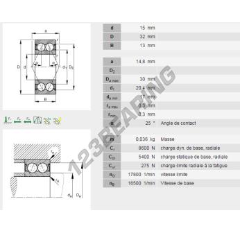 Das Rillenkugellager, bekannt als 3002-ZZ-INA INA, hat einen Innendurchmesser von 15 mm, einen Außendurchmesser von 32 mm und eine Dicke von 13 mm.