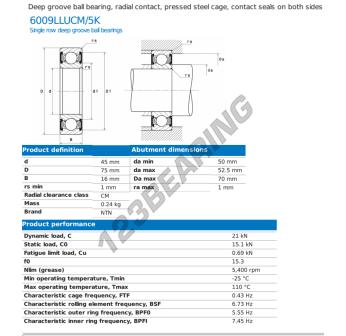Das Rillenkugellager, bekannt als 6009-LLU-CM-5K-NTN NTN, hat einen Innendurchmesser von 45 mm, einen Außendurchmesser von 75 mm und eine Dicke von 16 mm.