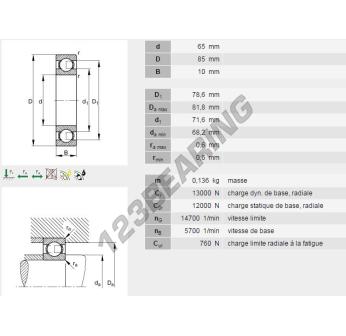 Das Rillenkugellager, bekannt als 61813-Y-INA INA, hat einen Innendurchmesser von 65 mm, einen Außendurchmesser von 85 mm und eine Dicke von 10 mm.