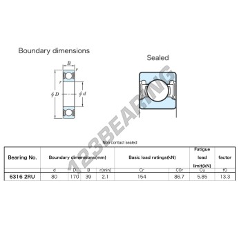 Das Rillenkugellager, bekannt als 6316-2RU-JTEKT JTEKT, hat einen Innendurchmesser von 80 mm, einen Außendurchmesser von 170 mm und eine Dicke von 39 mm.
