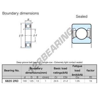 Das Rillenkugellager, bekannt als 6820-2RD-JTEKT JTEKT, hat einen Innendurchmesser von 100 mm, einen Außendurchmesser von 125 mm und eine Dicke von 13 mm.