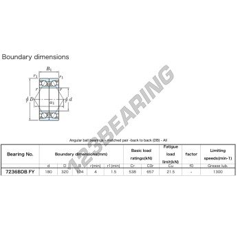 Das Rillenkugellager, bekannt als 7236-BDB-FY-JTEKT JTEKT, hat einen Innendurchmesser von 180 mm, einen Außendurchmesser von 320 mm und eine Dicke von 104 mm.