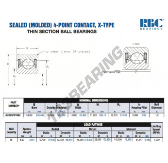 Das Rillenkugellager, bekannt als JG110-XP0-RBC RBC, hat einen Innendurchmesser von 279.4 mm, einen Außendurchmesser von 330.2 mm und eine Dicke von 25.4 mm.