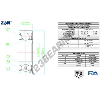 Das Rillenkugellager, bekannt als S6010-2RS-FDA-AISI420-ZEN ZEN, hat einen Innendurchmesser von 50 mm, einen Außendurchmesser von 80 mm und eine Dicke von 16 mm.
