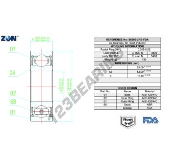 Das Rillenkugellager, bekannt als S6205-2RS-FDA-AISI420-ZEN ZEN, hat einen Innendurchmesser von 25 mm, einen Außendurchmesser von 52 mm und eine Dicke von 15 mm.