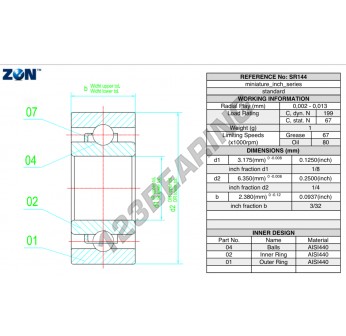 Das Rillenkugellager, bekannt als SR144-ZEN ZEN, hat einen Innendurchmesser von 3.2 mm, einen Außendurchmesser von 6.4 mm und eine Dicke von 2.4 mm.