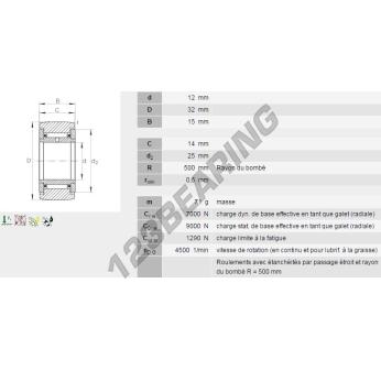Das Laufrollen, bekannt als NATR12-INA INA, hat einen Innendurchmesser von 12 mm, einen Außendurchmesser von 32 mm und eine Dicke von 15 mm.