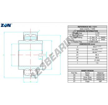 Das Pendelkugellager, bekannt als 11211-ZEN ZEN, hat einen Innendurchmesser von 55 mm, einen Außendurchmesser von 100 mm und eine Dicke von 60 mm.