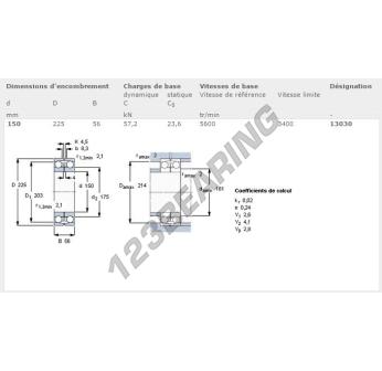 Das Pendelkugellager, bekannt als 13030-SKF SKF, hat einen Innendurchmesser von 150 mm, einen Außendurchmesser von 225 mm und eine Dicke von 56 mm.