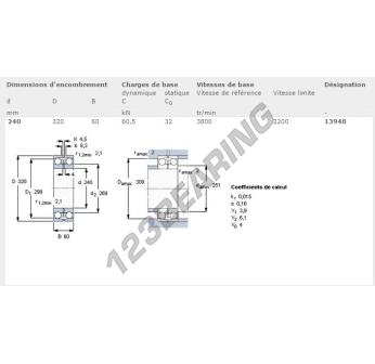 Das Pendelkugellager, bekannt als 13948-SKF SKF, hat einen Innendurchmesser von 240 mm, einen Außendurchmesser von 320 mm und eine Dicke von 60 mm.