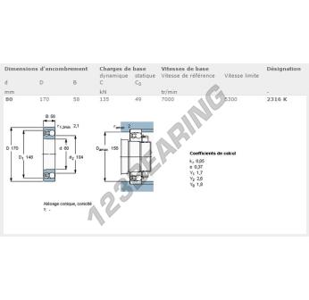 Das Pendelkugellager, bekannt als 2316-K-SKF SKF, hat einen Innendurchmesser von 80 mm, einen Außendurchmesser von 170 mm und eine Dicke von 58 mm.