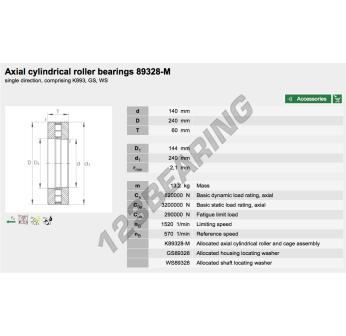 Das Rollenlager, bekannt als 89328-M-INA INA, hat einen Innendurchmesser von 140 mm, einen Außendurchmesser von 240 mm und eine Dicke von 60 mm.