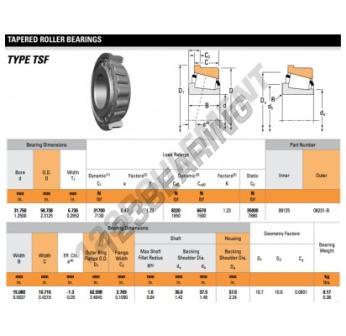 Das Kegelrollenlager, bekannt als 08125-08231B-TIMKEN TIMKEN, hat einen Innendurchmesser von 31.75 mm, einen Außendurchmesser von 58.74 mm und eine Dicke von 6.74 mm.