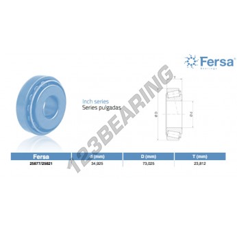 Das Kegelrollenlager, bekannt als 25877-25821-ASFERSA ASFERSA, hat einen Innendurchmesser von 34.925 mm, einen Außendurchmesser von 73.025 mm und eine Dicke von 23.812 mm.